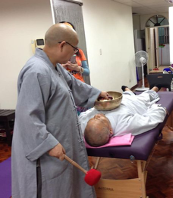 -教授手工大銅缽在身體經絡敲擊而得到療育放鬆效果